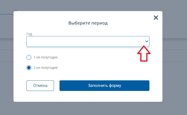 В открывшемся окне налоговой формы необходимо выбрать период и нажать на "Заполнить форму"