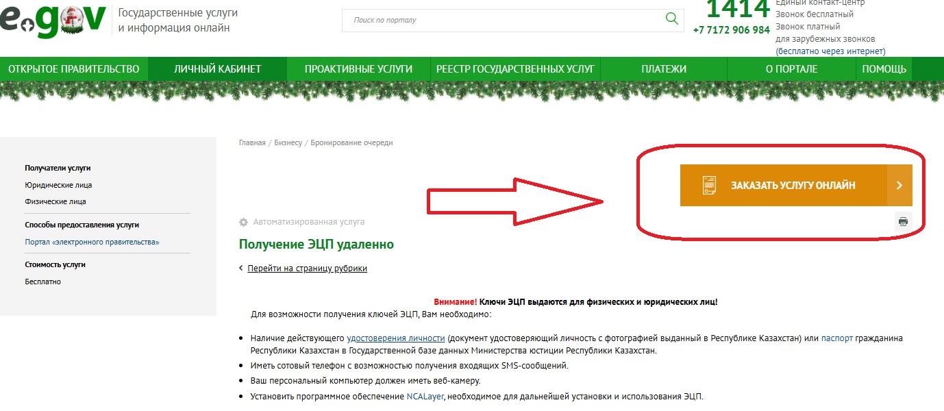 2. нажать "Заказать услугу онлайн"