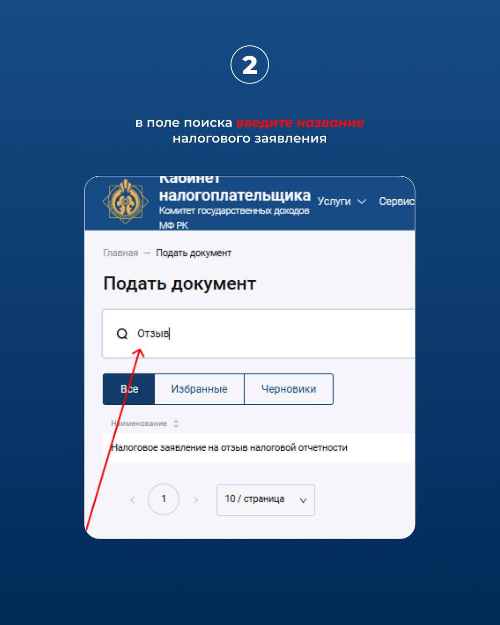 2. В поле поиска введите название налогового заявления.