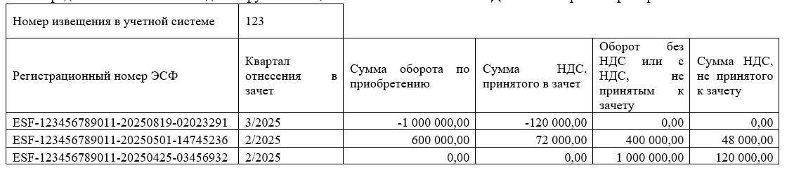 4.2 Заполнение полей извещения об отнесении в зачет НДС