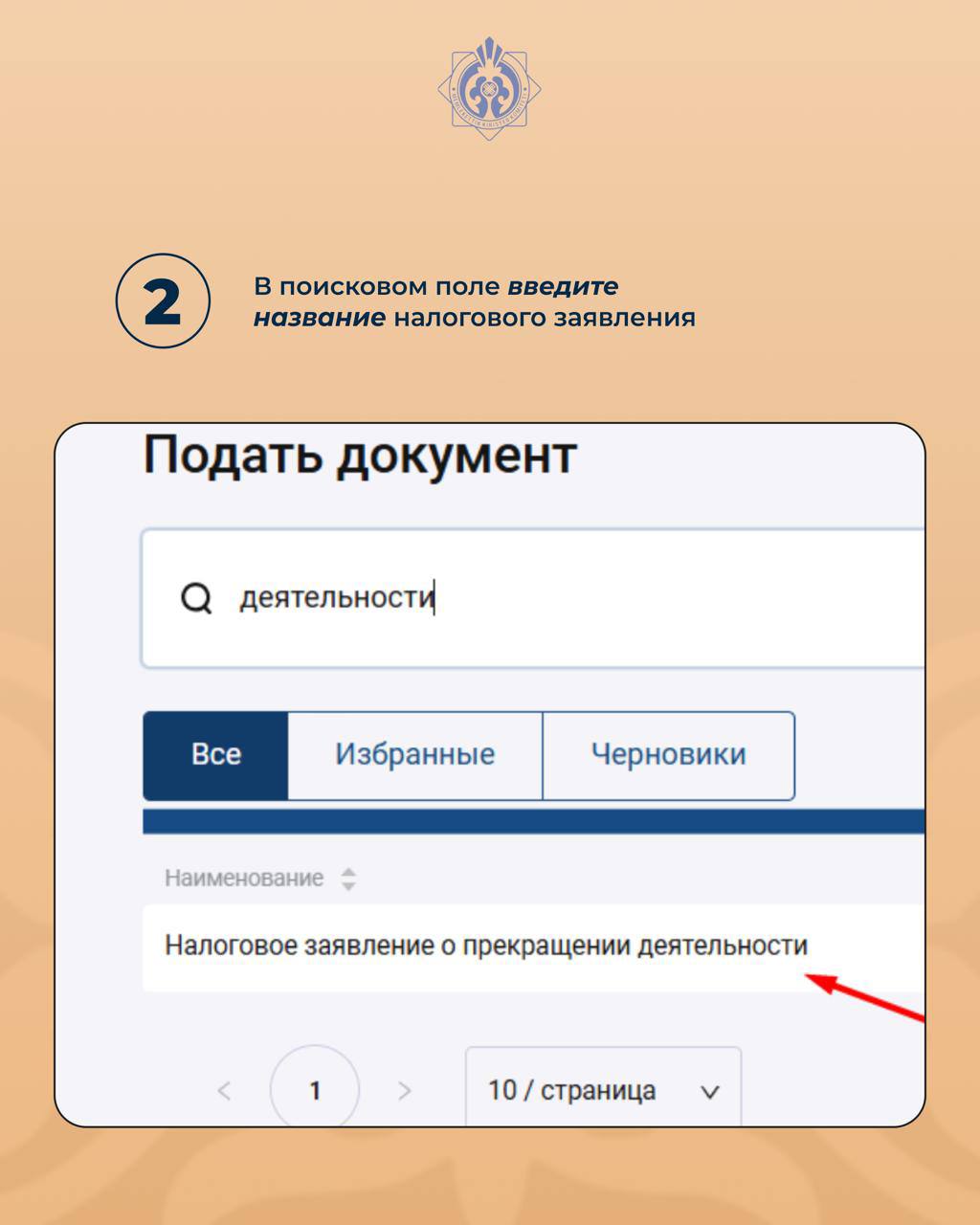 2. В поисковом поле введите название налогового заявления.