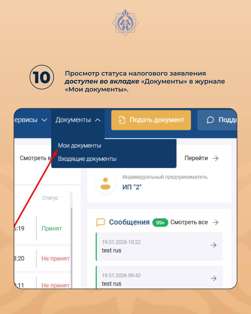 10. Просмотр статуса налогового заявления доступен во вкладке «Документы» в журнале «Мои документы».