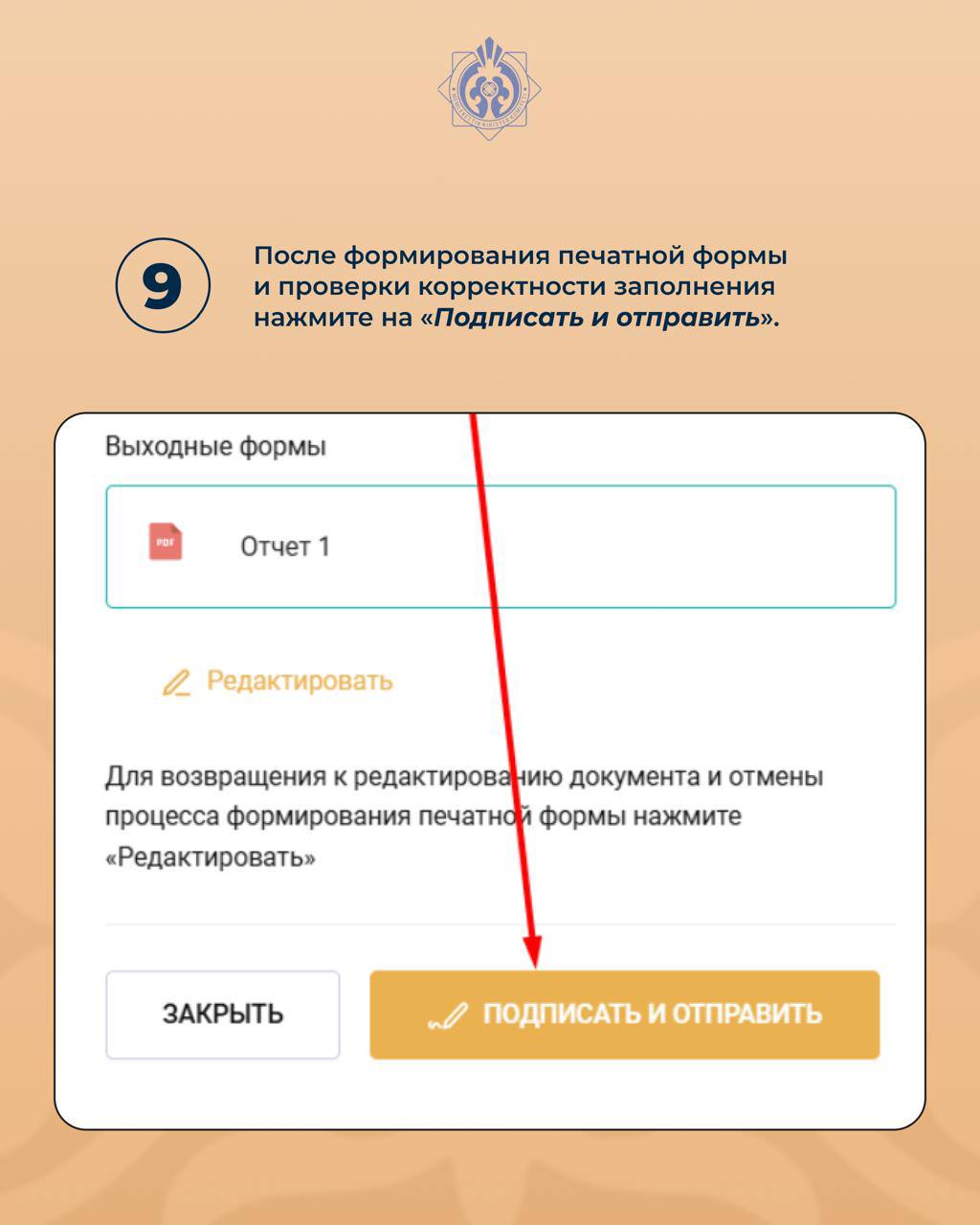 9. После формирования печатной формы и проверки корректности заполнения нажмите на «Подписать и отправить».
