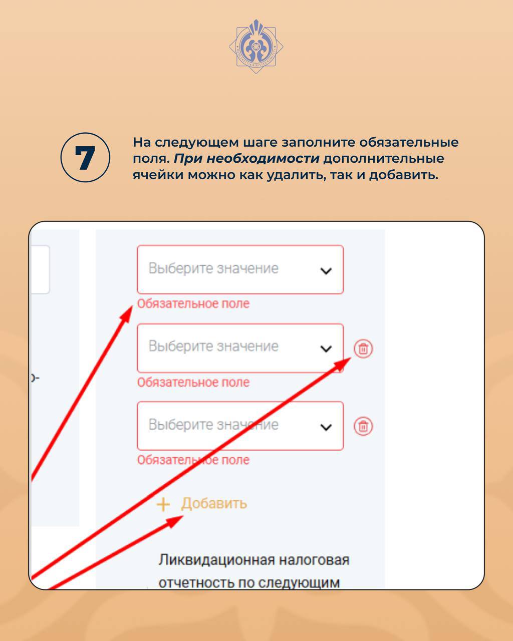 7. На следующем шаге заполните обязательные поля. При необходимости дополнительные ячейки можно как удалить, так и добавить.
