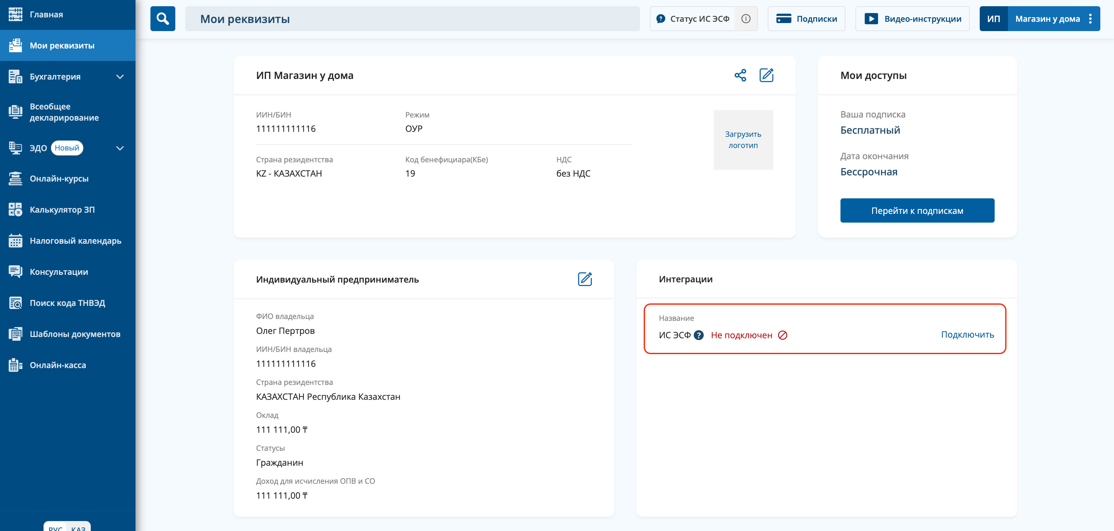 Для того, чтобы отправить ЭСФ в Бизнес-помощнике от Mybuh.kz напрямую на портал ИС ЭСФ необходимо: