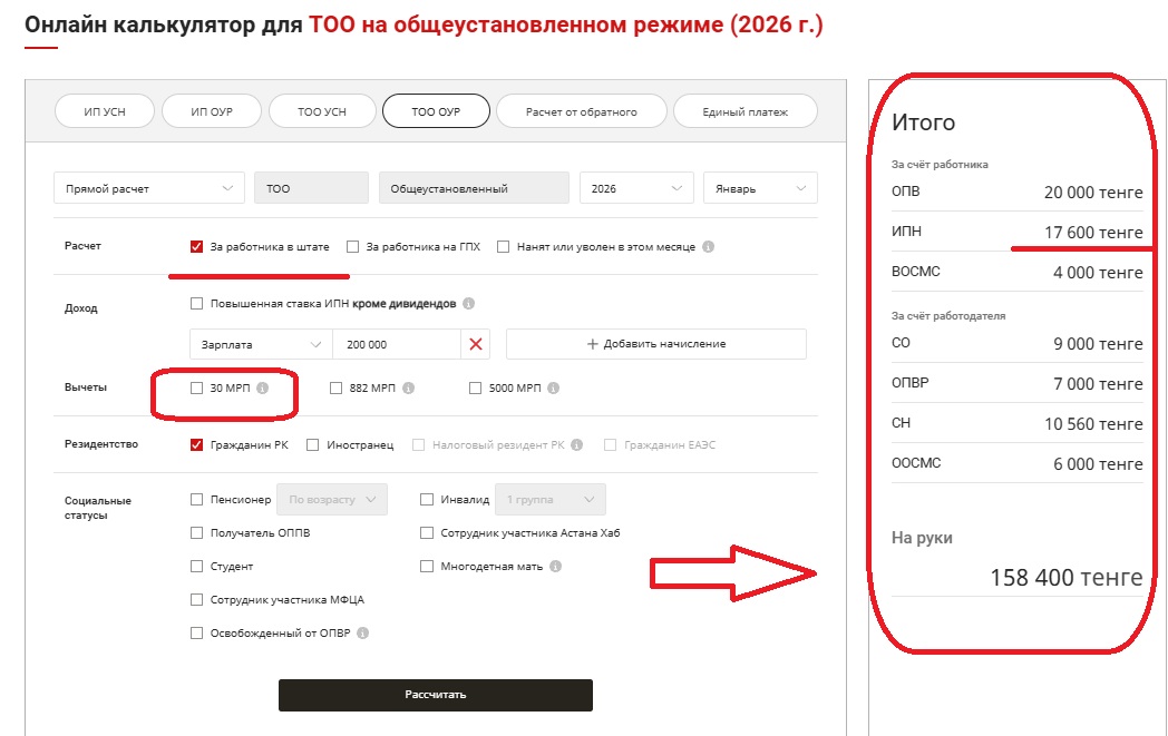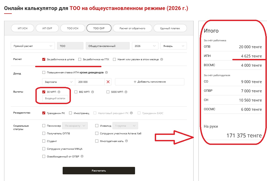 Проверим расчет с помощью Калькулятора от «Mybuh.kz».
